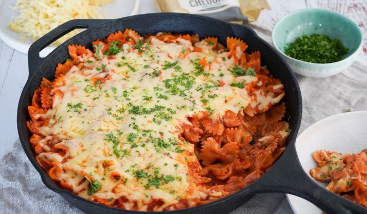 Bring pastavandet i kog. I mellemtiden skrælles og skæres løget og...