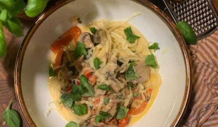 - Skær baconet i strimler og læg dem i en gryde. Steg på medium varme, indtil de er sprøde. Tag derefter op af gryden og lad det dryppe af på noget køkkenrulle.
