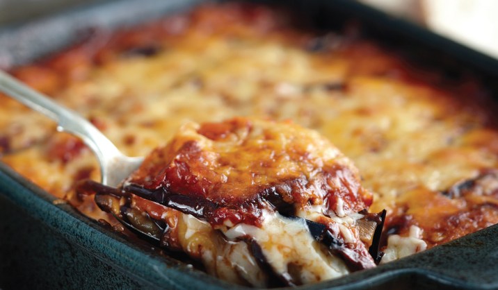 Bagt aubergine med tomat og ost