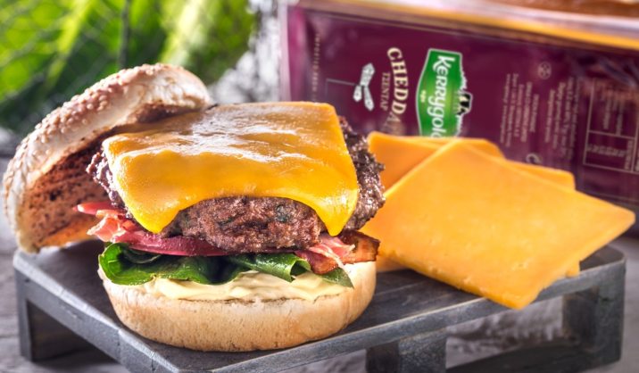 - Κρατάτε 1 χούφτα από το τριμμένο Kerrygold Cheddar και ανακατεύετε το υπόλοιπο στον χλιαρό κιμά.