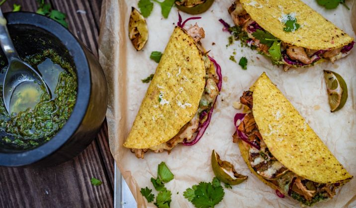 Γεμιστά τάκος με κοτόπουλο και τριμμένο τυρί cheddar