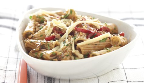Ριγκατόνι με σάλτσα κόκκινης πιπεριάς και Kerrygold Imokilly Regato Classic
