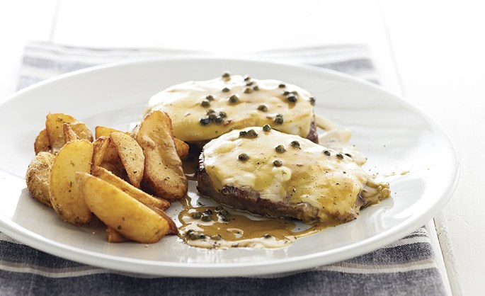 • Σερβίρετε το φαγητό σε πιάτα, συνοδεύοντας με χοντροκομμένες τηγανητές πατάτες πασπαλισμένες με τριμμένο Kerrygold Imokilly Regato classic