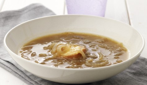 Κρεμμυδόσουπα γαλλική με γκρατιναρισμένες φέτες ψωμιού και Kerrygold Imokilly Regato Classic