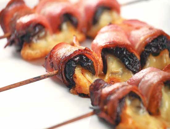 Σουβλάκια με Kerrygold Imokilly Regato Classic, μπέικον και δαμάσκηνα