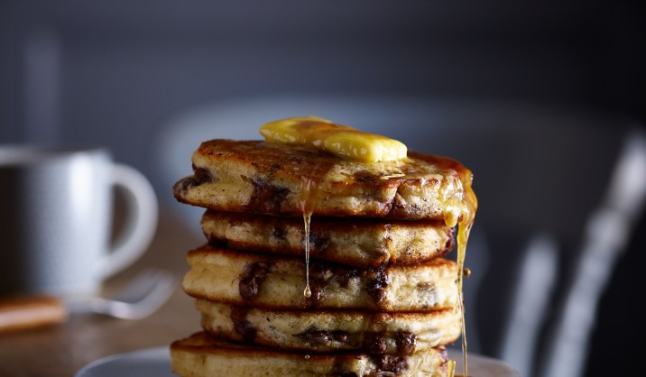 Pancakes de pepitas de chocolate con mantequilla de arce y Kerrygold