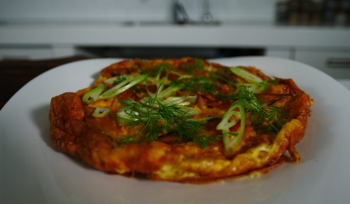 BAKED SMOKED MACKEREL OMELETTE WITH MELTED CHEESE