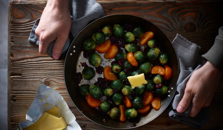- Melt the butter in a non-stick pan over a medium high heat making sure all of the pan is coated nicely then add the onions and spring onions. Then cook for two minutes or so.