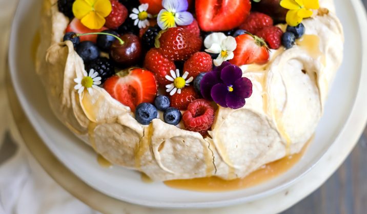 - For the chocolate glaze, melt the dark chocolate in a bowl set over a saucepan of hot water. When the chocolate has melted remove the bowl from the heat and gently stir through the cream. Fold in the butter until you have a shiny, spreadable chocolate glaze.